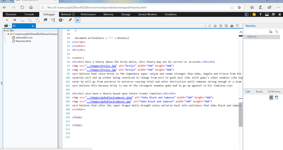Below I have Images of each page of this website (it is a very basic website but It was my very first website to play about with different aspects of Html, CSS and Javascript) and then below each page will be images of the code behind them.